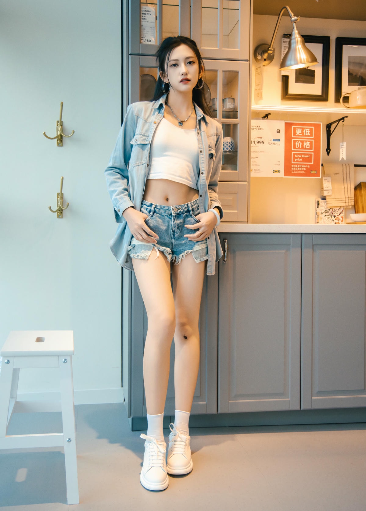 足愉心 NO.012 奶芙(搭配:碎花衬衫、牛仔长裤、运动鞋、白色棉袜、裸足)[110P2V 14.5GB]